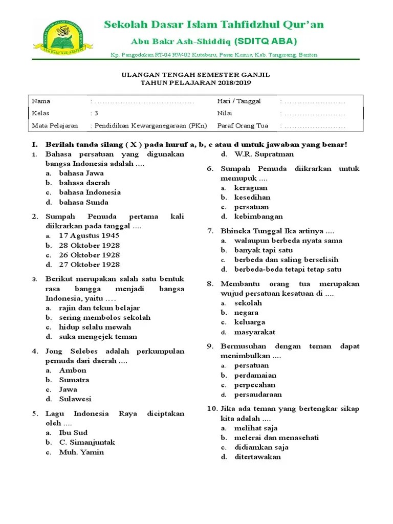 Salah satu contoh pengamalan nilai sumpah . Lingkungan alam lengkap dengan latihan soal dan jawaban. Puncaknya pada 17 agustus 1945, bangsa indonesia dapat memproklamasikan kemerdekaannya. Soal uts ganjil kurikulum 2006 mata pelajaran pkn untuk kelas 3 sd by. Untuk sd dan mi kelas 3 / penulis, edi.
